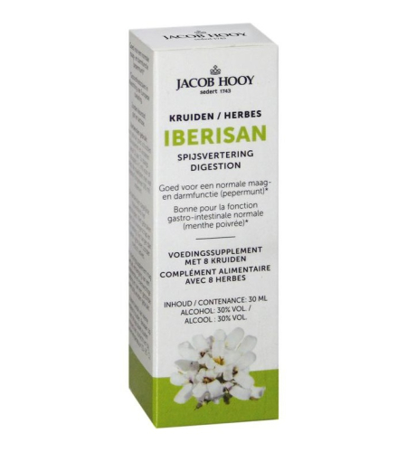 Jacob Hooy spijsverteringsdruppels zijn goed voor een normale maag- en darmfunctie. IberiSan is een voedingssupplement en bevat 8 kruiden voor een natuurlijke en effectieve verlichting van meerdere maag- en darmklachten.Ingrediënten van Jacob Hooy IberiSan: