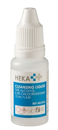 Van Heek Medical Heka Cleansing Liquid is een desinfecterende vloeistof, bestaande uit 70% alcohol, 29% water en 0,3% chloorhexidine.