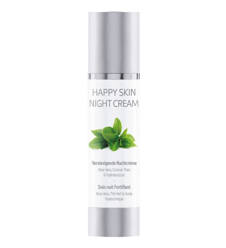 Happy Skin Nachtcrème is samengesteld zonder parabenen, minerale oliën, phenoxyethanol, petroleumderivaten en PEG. De producten zijn veganistisch en dierproefvrij.