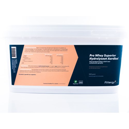 Fittergy Pro Whey Superior Hydrolysaat Aardbei 1000 gram Klik voor een vergroting