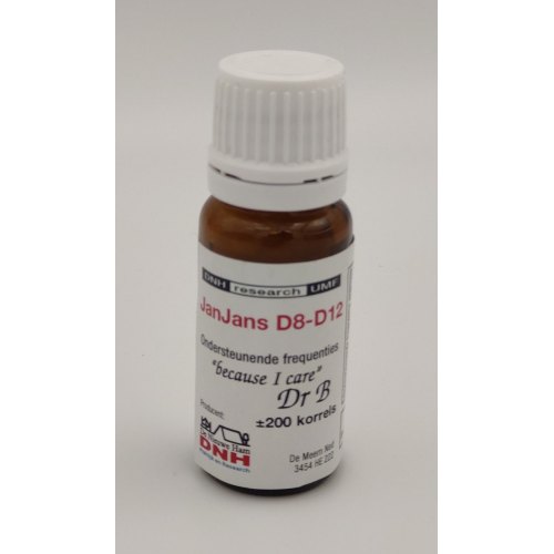 Gezonde personen hebben een gezond functionerend frequentiepatroon. Via een vegatieve reflextest kunnen door een therapeut afwijkingen in de frequentie gemeten worden. De speciaal ontwikkelde middelen zijn gericht op dit frequentiepatroon.Ingrediƫnten van DNH Research JanJans D8-D12: