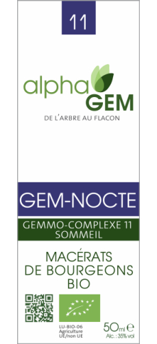 Gem-Nocte Gemmo-complex 11, slaap. Maceraat van bio knoppen.Samenstelling van AlphaGem Gemmo-Complex 11 Gem-Nocte Biologisch: