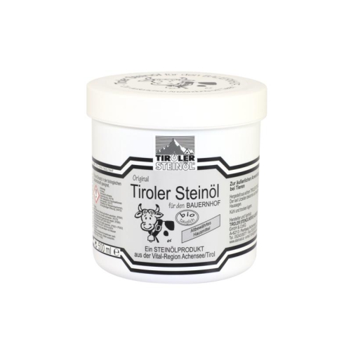 Het product voor dieren, Tiroler Steinöl für den Bauernhof, heeft een hoge concentratie Steenolie in water oplosbare vorm. In combinatie met een huidvriendelijke zalf is dit een uiterst effectieve behandeling gebleken. Door de samenstelling is het product geschikt bevonden voor biologisch gebruik. De praktische verpakking zorgt voor een zuinig gebruik. Het product is uitgebreid getest. De vele positieve reacties hebben ertoe geleid dat het product op de markt is gebracht.