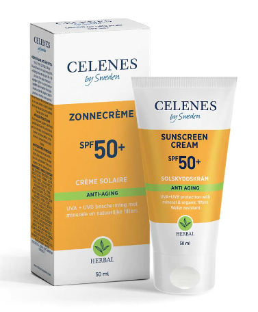 Productinformatie van Celenes Zonnecrème SPF50+ Anti Aging Herbal: