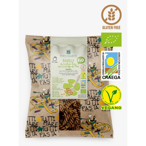 Productinformatie van Porto Muinos Rode Linzen Fusilli met Zeesla Zeewier Biologisch: