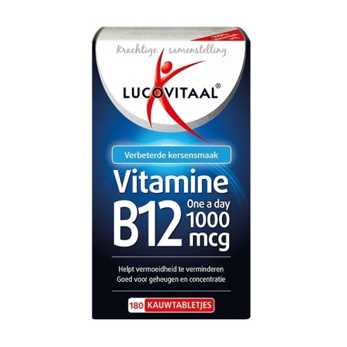 Lucovitaal Vitamine B12 bevat maar liefst 1000 mcg Vitamine B12 per zuigtabletje. Mensen met een Vitamine B12-tekort hebben veelal een opnameprobleem van Vitamine B12.Het lichaam kan de Vitamine B12 niet goed omzetten en op de juiste wijze naar het bloed transporteren. Met Vitamine B12 in een capsule, tablet of als onderdeel van een multivitaminen loop je dus tegen hetzelfde opnameprobleem aan als bij de opname van Vitamine B12 uit dierlijk voedsel.
