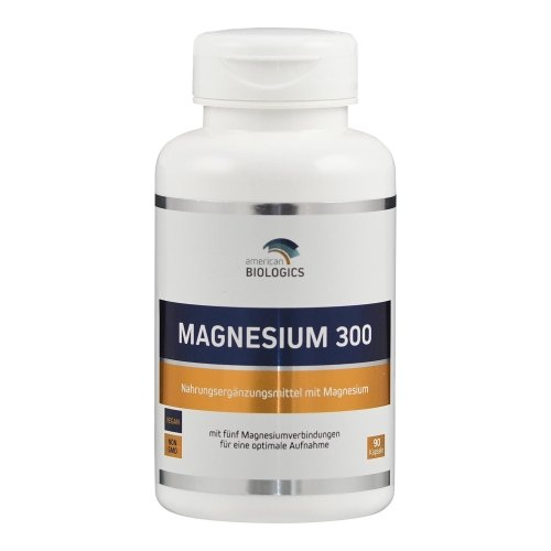 Magnesiumoxide , magnesiumzouten van citroenzuur , capsuleomhulsel (vulstof hydroxypropylmethylcellulose) , magnesiumcarbonaat , magnesiumbisglycinaat , magnesiummalaat , MCT-olie (middellange keten triglyceriden).Gebruik van American Biologics Magnesium 300: