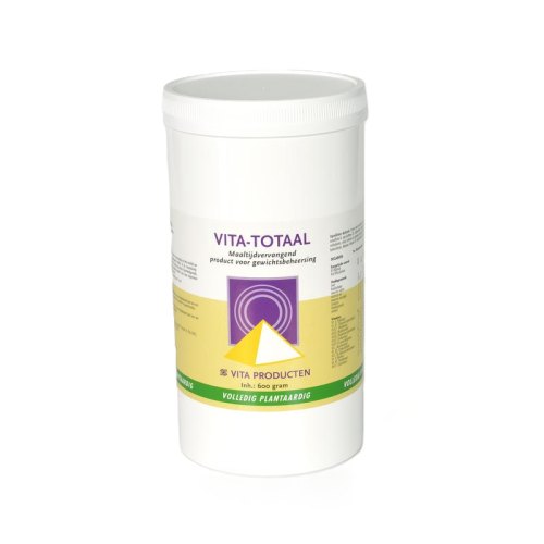 Elke Vita-Totaal maaltijd bevat een compleet scala aan essentiële nutriënten die nodig zijn om gezond te blijven leven. Daarnaast vult deze maaltijdvervanger op termijn eventuele tekorten in het lichaam aan. Afhankelijk van het doel waarvoor Vita-Totaal wordt gebruikt, kunnen de laag gehouden kj worden aangevuld. In ieder geval heeft iedereen die Vita-Totaal twee keer per dag gebruikt minimaal een gezonde (warme) maaltijd nodig van 3500 tot 4000 kj.Samenstelling van Vita Producten Vita Totaal: