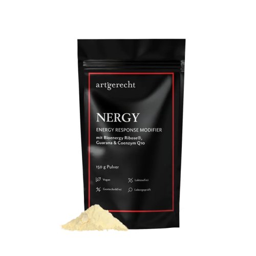 Het menselijk lichaam heeft energie nodig voor alle processen – vooral tijdens sport, fysieke en mentale activiteit, maar ook tijdens de regeneratie. In onze snelle wereld, waar prestatie en uithoudingsvermogen van cruciaal belang zijn, moeten er elke dag nieuwe obstakels worden overwonnen. Of het nu gaat om professionele sporters, leerlingen, studenten of professionals, ze hebben allemaal één ding gemeen; Ze willen op korte termijn extra prestaties leveren en zich concentreren, voor examens, trainingen of marathon-videoconferenties. Hierbij komt de bijzondere samenstelling van geselecteerde micronutriënten in NERGY Q10 in het spel.De ribose in NERGY Q10 kan gemakkelijk door het lichaam worden opgenomen en direct worden gebruikt, zonder dat er sprake is van een snelle insulineafgifte. Magnesium, Riboflavine (vitamine B2), Niacine (vitamine B3) en Pantotheenzuur (vitamine B5) dragen bij aan de vermindering van vermoeidheid en moeheid. Daarnaast dragen Magnesium, Riboflavine, Niacine en Thiamine (vitamine B1) bij aan een normaal energiemetabolisme, terwijl Magnesium, Niacine en Thiamine ook bijdragen aan een normale psychologische functie.