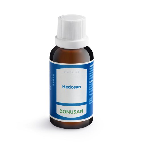 Stinkende gouwe (Chelidonium majus), zwaardlelie (Iris versicolor), haver (Avena sativa), kamille (Chamomilla recutita), zwarte els (Alnus glutinosa). Alcoholpercentage 59% v/v.Gebruik van Bonusan Hedosan: